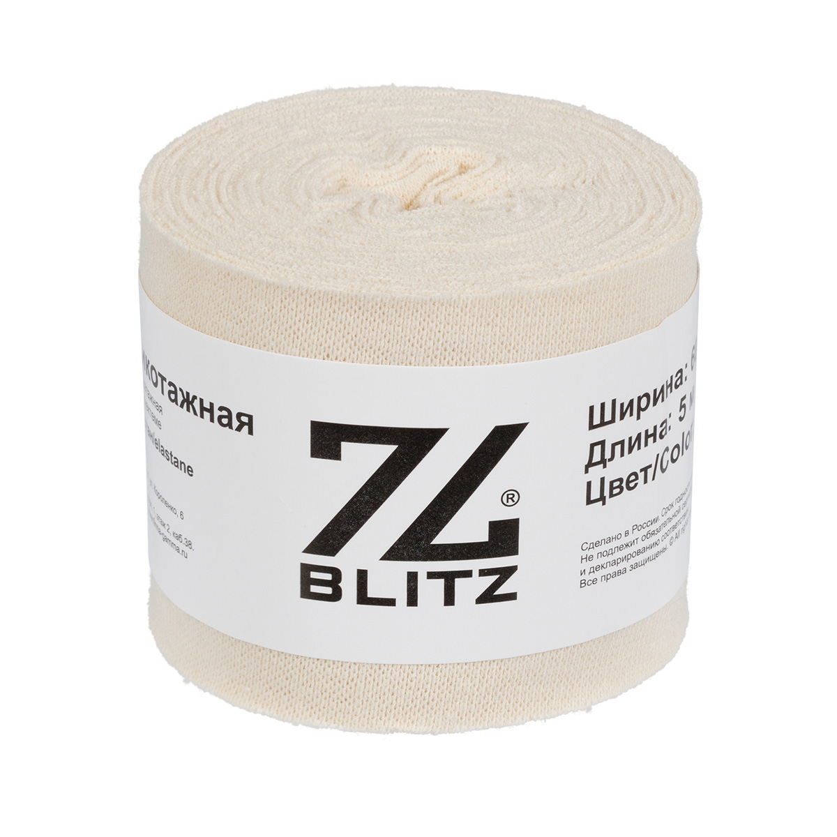Лента окантовочная 60 мм Окантовка трикотажная (рибана) "BLITZ" 95% хлопок, 5% эластан 5 м № 013 кремовый