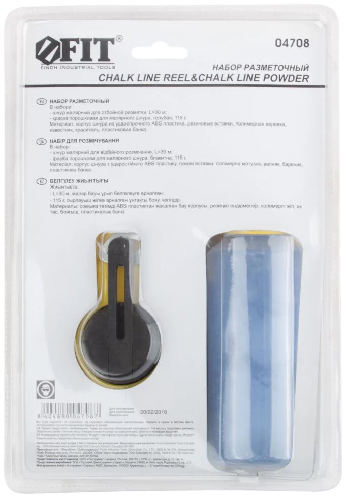 Шнур малярный отбойный, ABS пластиковый прорезиненный корпус 30 м + краска разметочная 115 гр. FIT IT
