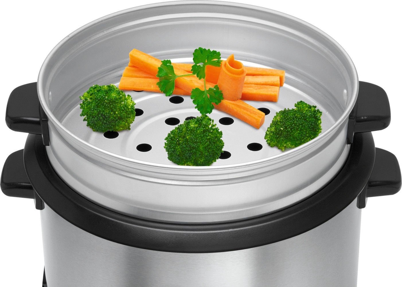 - Papildoma informacija Nuimamas puodas ryžiams (pupelėms, sriuboms, košėms) su neprisvylančiu paviršiumi. Papildomas aliumininis krepšelis gaminimui garuose. Stiklinis dangtis su skylute garams. Maksimalus pagaminimo svoris: 1.3 kg ryžių (drėgno produkto svoris). Automatinis šilumos palaikymas po pagaminimo. Apsaugota nuo įkaitimo rankena, nuimamas laidas. 2 kontrolinės lemputės, gaminimo ir šilumos saugojimo. Matavimo indas ir šaukštas komplekte