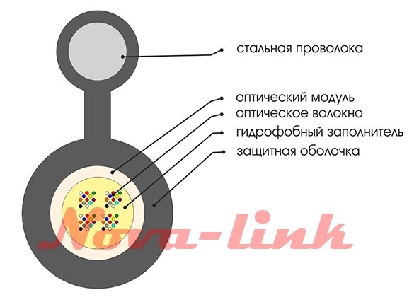 Кабель оптический SM 8 ОВ 2.0кН подвес проволока ЦТ ОКТ-8(G.652.D)Т/С 2кН