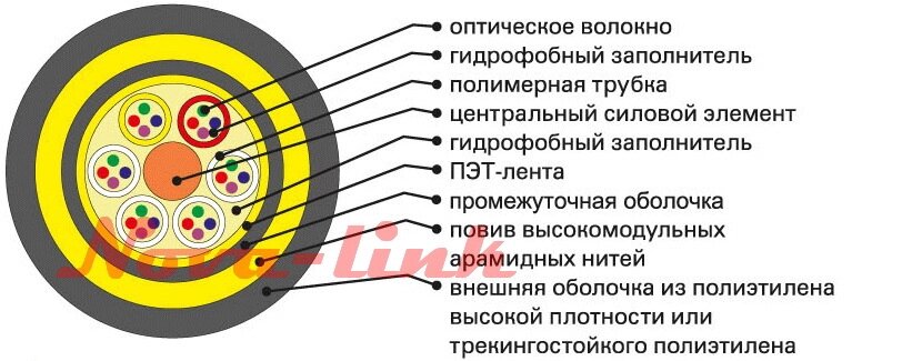 Кабель оптический SM 8 ОВ 4кН d12.2мм самонес арамид ОКК-0,22-8 4кН