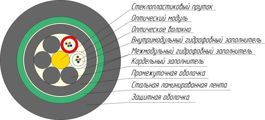 Кабель оптический SM 8 ОВ канализация 2.7кН гофролента МК НГ групп прокл ОКЛнг (А)-HF-0,22-8П 2,7кН