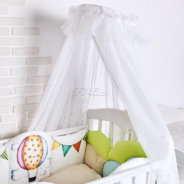 Балдахин на кроватку ТОПОТУШКИ Облачко сетка 1,6х4 м (112) — легкий и практически невесомый балдахин. Он сделает из кроватки настоящее уютное гнездышко. Модель оснащена двумя удобными держателями, которые легко снимаются. Сама вуаль практически незаметна и не создает большого объема. Еще одно его предназначение — защита от насекомых. Нежный и легкий балдахин украсит кроватку малыша. Он смотрится невесомо, классический стиль можно сочетать с любым интерьером. Подойдет для всех видов держателей.