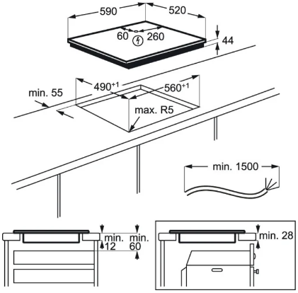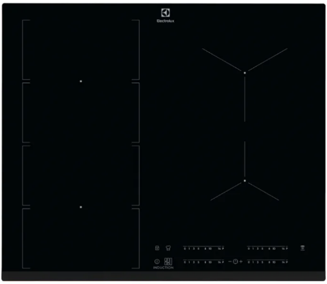 Электрическая, индукционные, 4, стеклокерамика, сенсорное управление, изменяемая зона нагрева, автоматика закипания, защита от детей, защитное отключение, индикатор остаточного тепла, ширина встраивания 56 см.