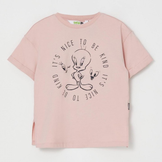 Футболка SELA 2801040241 для девочки, цвет пудраТрикотажная футболка с лицензионным принтом Looney Tunes