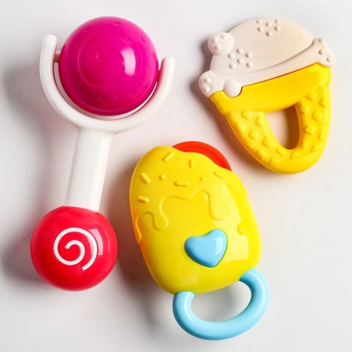 Набор погремушек 'Сладости 3' с прорезывателем, 3 шт