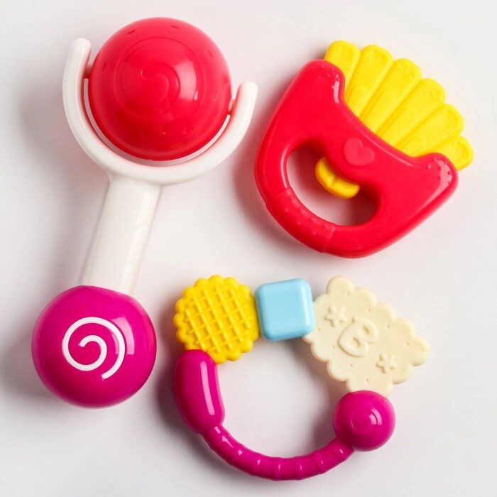 Набор погремушек 'Сладости' с прорезывателем, 3 шт