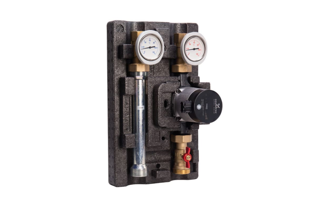 Насосный модуль Huch EnTec ECO DK DN25 с насосом Grundfos UPM3 HYBRID 25-70 101.15.025.04 GF применяется в любом прямом контуре, т.е. в контуре, в который можно подавать напрямую теплоноситель с температурой источника тепла (не охлаждая).