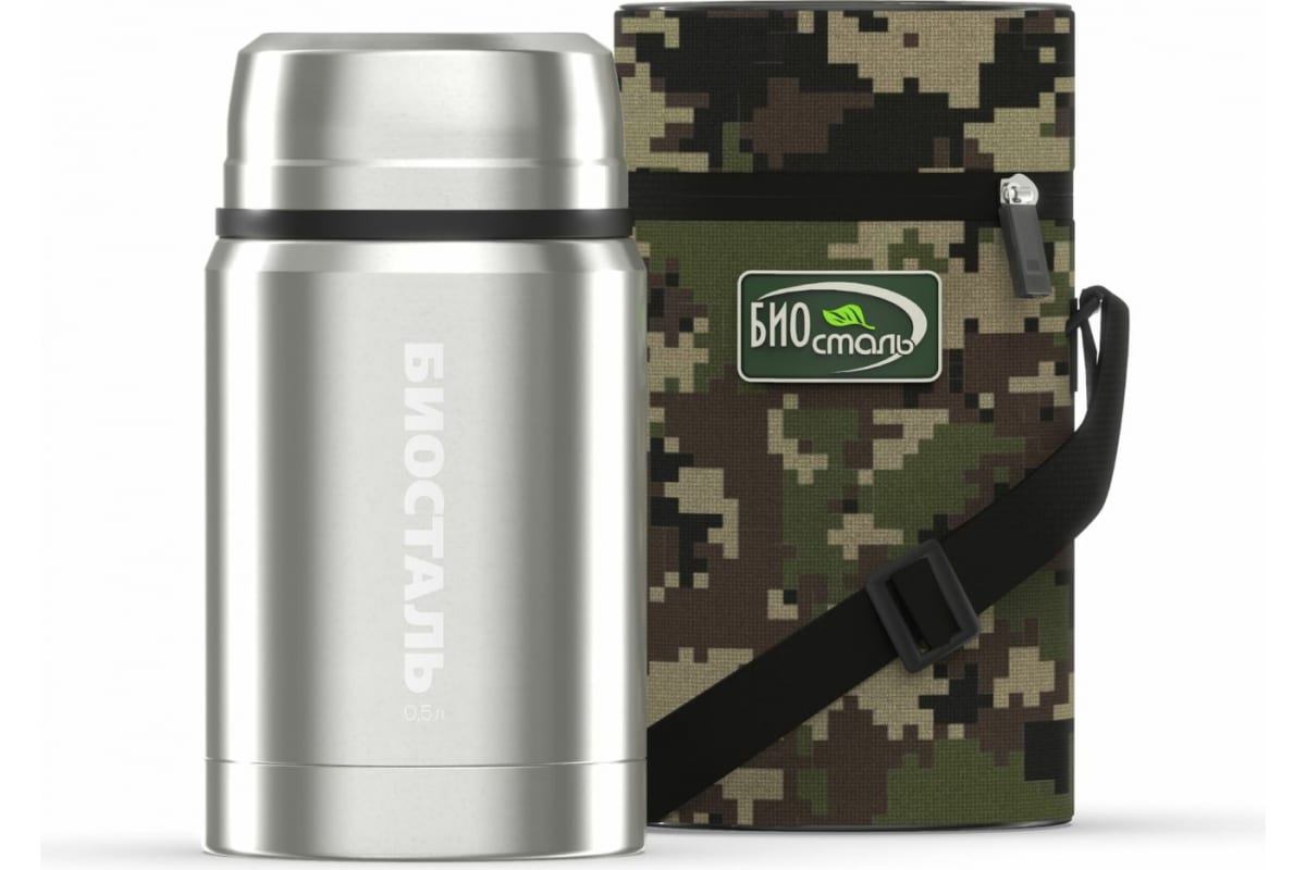 Термос Biostal БИОСТАЛЬ-ОХОТА с широкой горловиной, суповой, с ложкой , в термочехле, 0.5 л NTS-500В