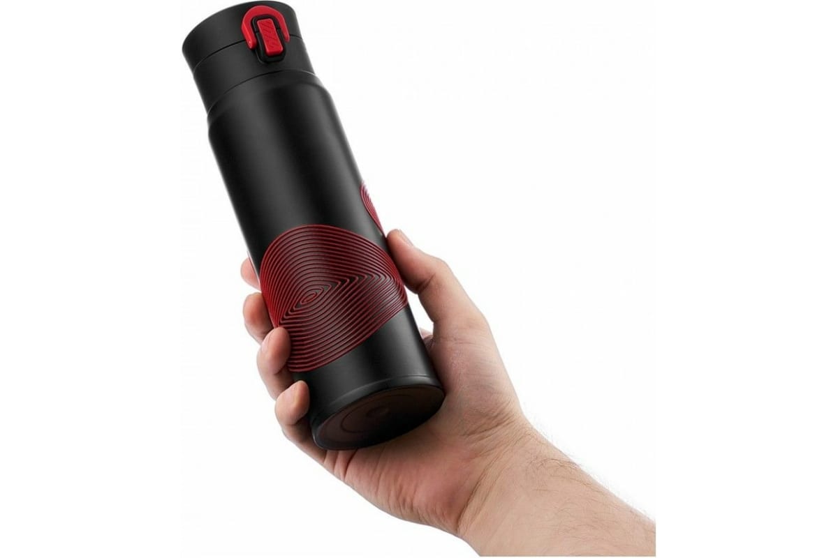 Термос-термокружка Walmer TRACE из нержавеющей стали с силиконовым рисунком, 450 мл, цвет черный W24208371 совмещает в себе достоинства термоса и термокружки.