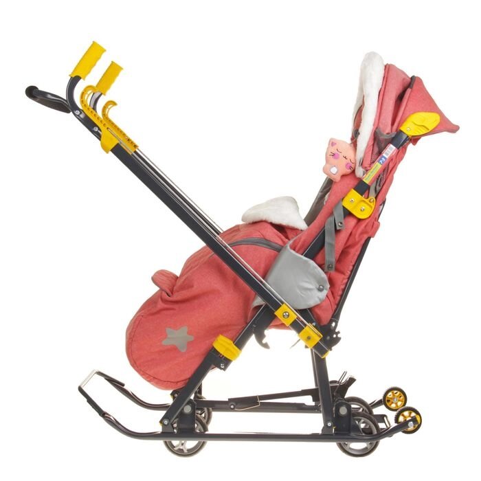 Дополнительнокузов трансформируется плоские полозья 40 мм высокопрочный стальной каркас выдвижная колесная база высокий складной трёхсекционный козырёк с увеличенной высотой по спинке козырёк с меховой окантовкой спинка регулируется до положения лёжа подножка для ног с регулируемым углом наклона, позволяет ребёнку в положении лёжа комфортно вытягивать ножки светоотражающий кант и элементы на чехле широкое посадочное место 40 см чехол для ног с 2 молниями для удобного открывания с двух сторон смотровое окошко для наблюдения за ребёнком яркий рисунок на чехле съёмный меховой матрасик рукавички с мехом мягкая игрушка в комплекте пятиточечный ремень безопасности обрезиненные колёса на полозьях для удобной транспортировки перекидная ручка-трость рычаги управления механизмом перемещения ручки у рукоятки автоматическая фиксация ручки карман на чехле для ножек с клапаном бампер, обтянутый тканью в цвет чехла новый дизайн сумки с кармашками для полезных мелочей съёмный прозрачный тент от ветра и дождя с двумя молниями, крепится к чехлу коляски на пуговицу для исключения продувания обрезиненные колёса на полозьях для удобной транспортировки размер в разложенном виде 119 х 51 х 106, 5 см размер с выдвинутой колёсной базой 119 х 51 х 112 см размер в сложенном виде 117 х 51 х 32 см.