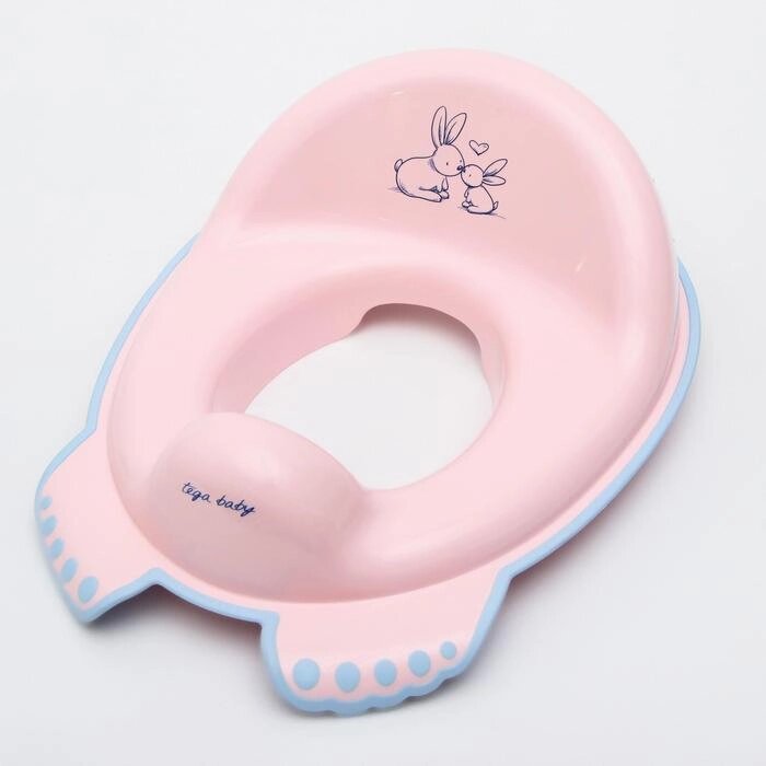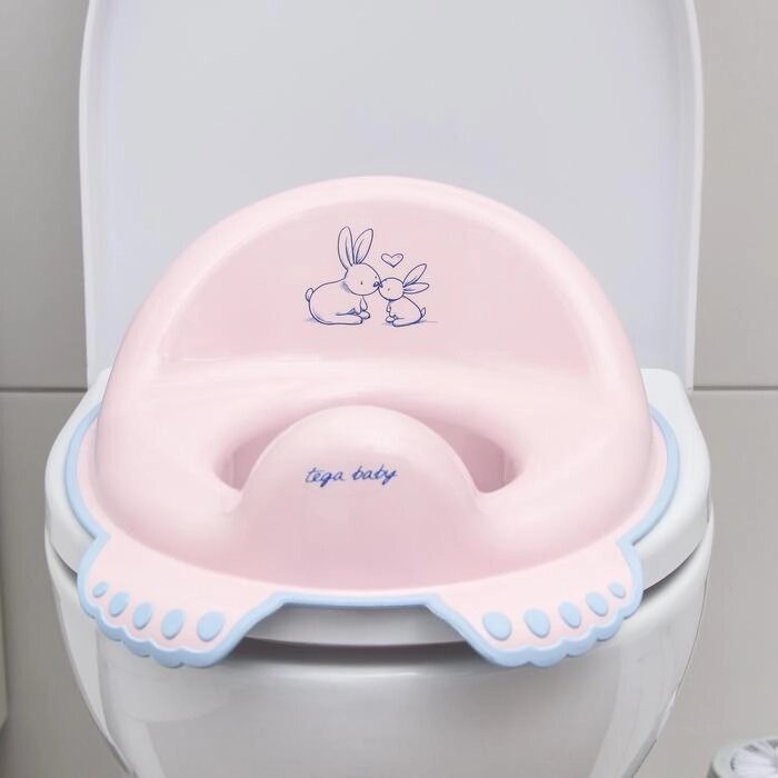 Детская накладка - сиденье на унитаз «Кролики» антискользящая, цвет розовый