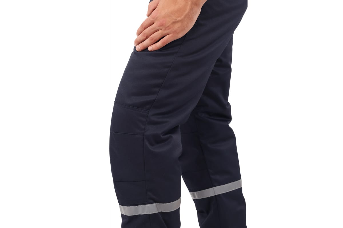 Благодаря усилительным накладкам в области колен ткань не вытягивается.