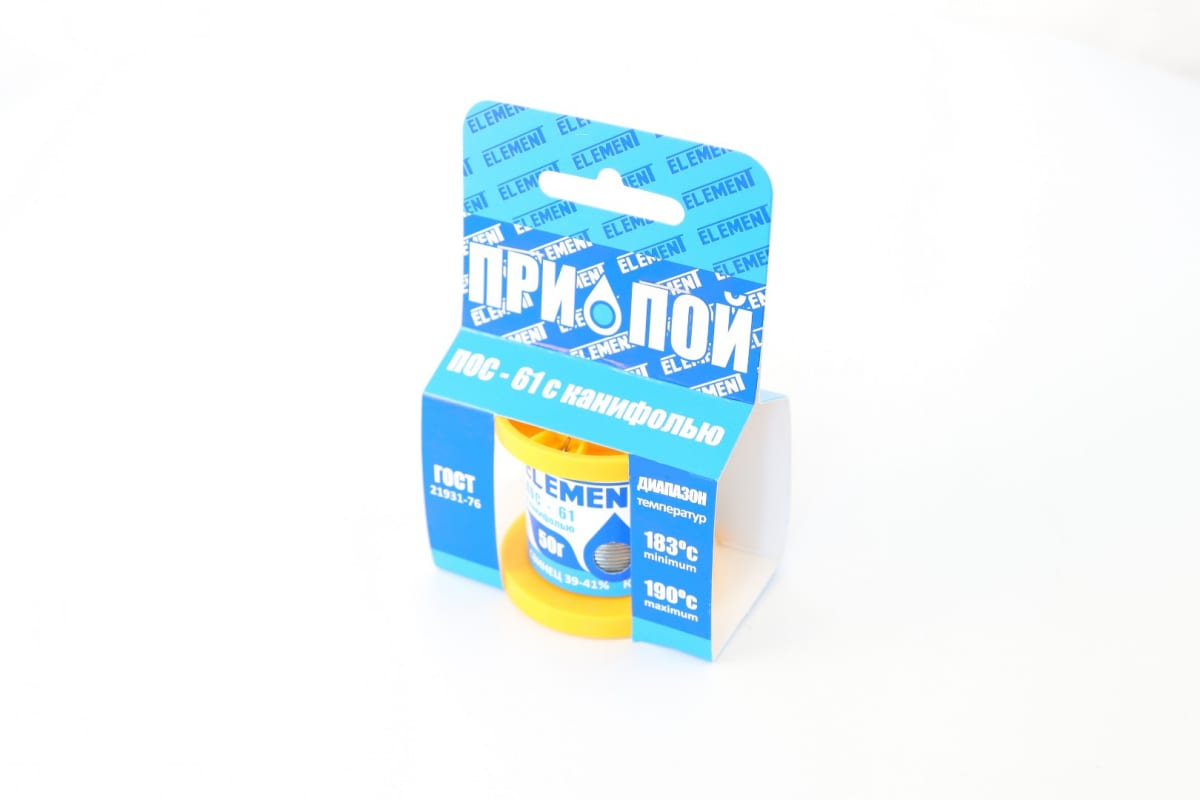 Припой ПОС 61 (0,8 мм; 50 гр. с канифолью) ELEMENT 17461
