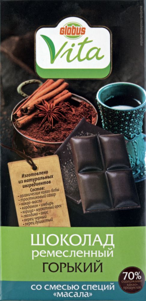 - Состав органические какао-бобы, тростниковый сахар, какао-масло, кардамон, имбирь, корица, мускатный орех, гвоздика, анис, перец черный, перец душистый. возможно наличие орехов, кунжута, арахиса, горчицы, сухого молока.