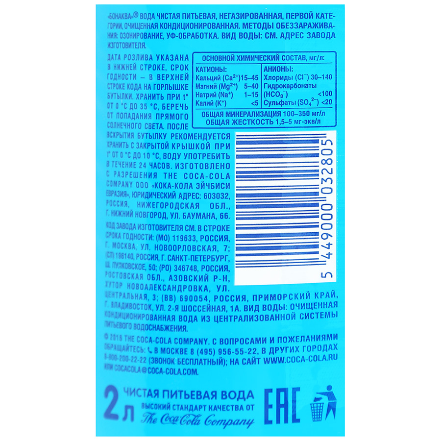 - Состав чистая питьевая вода первой категории негазированная, очищенная кондиционированная централизованного источника водоснабжения. минерализация не более 0,25 мг/л