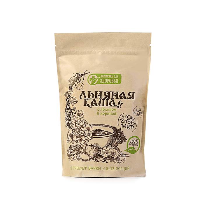 - Состав Семя льна перемолотое, зеленая гречка перемолотая, сушеное яблоко, корица.