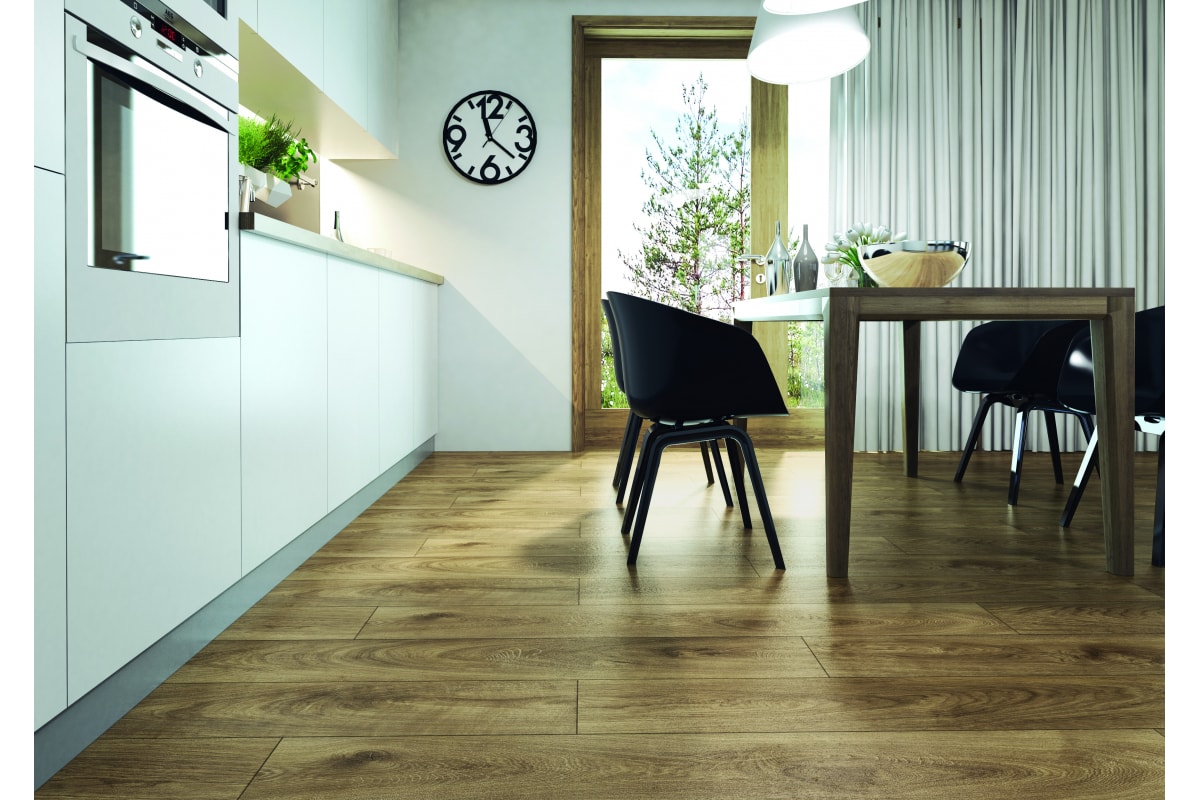 Панели изготовлены на водонепроницаемой 8 мм плите с герметичным замком AQUA PEARL, что гарантирует защиту пола от пролитой жидкости в течение 24 часов (в соответствии с тестом NALFA). Материал идеально подойдет для стыка с керамической плиткой.