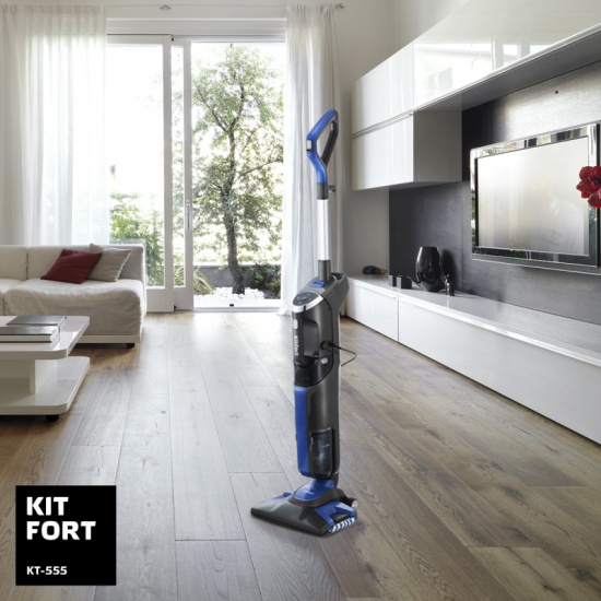 Вертикальный пылесос Kitfort KT-555 "6-в-1" с функциями паровой швабры и ручного пароочистителя удобен при локальной и генеральной уборке. Он всасывает пыль и мелкий мусор, а затем очищает поверхность от грязи, въевшихся пятен и жира при помощи горячего пара. Паровой пылесос имеет функцию вертикальной парковки и занимает мало места при хранении, а во время работы может легко вписаться в узкий коридор или комнату, заполненную различными предметами.