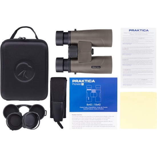 Бинокль Praktica Pioneer R 10x42 предлагается в редком цветовом решении умбра. Модель обладает великолепными характеристиками: хорошим светопропусканием с отличной четкостью изображения, антитуманным свойством, водозащитой, складными наглазниками, плавной регулировкой фокуса, широким полем обзора, небольшим весом.