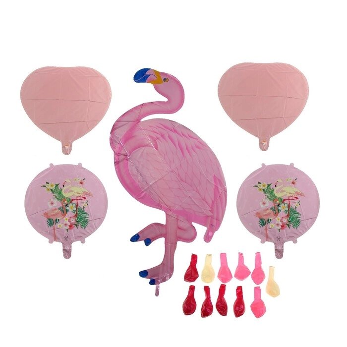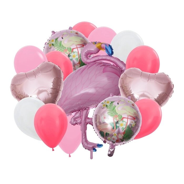 Букет из шаров «Фламинго», фольга, латекс, набор 16 шт., цвет розовый