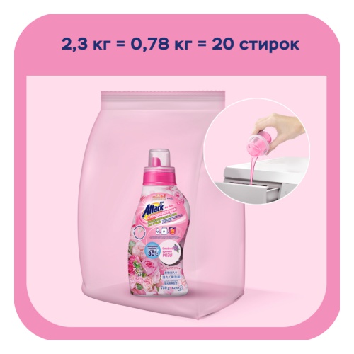 Гель для стирки ATTACK New Beads Роза с кондиционером концентрированный 0.78 кг 62030029