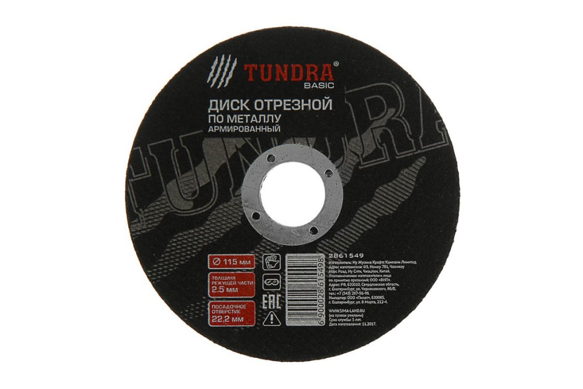 Круг отрезной армированный по металлу (115х2.5х22 мм) TUNDRA 2861549