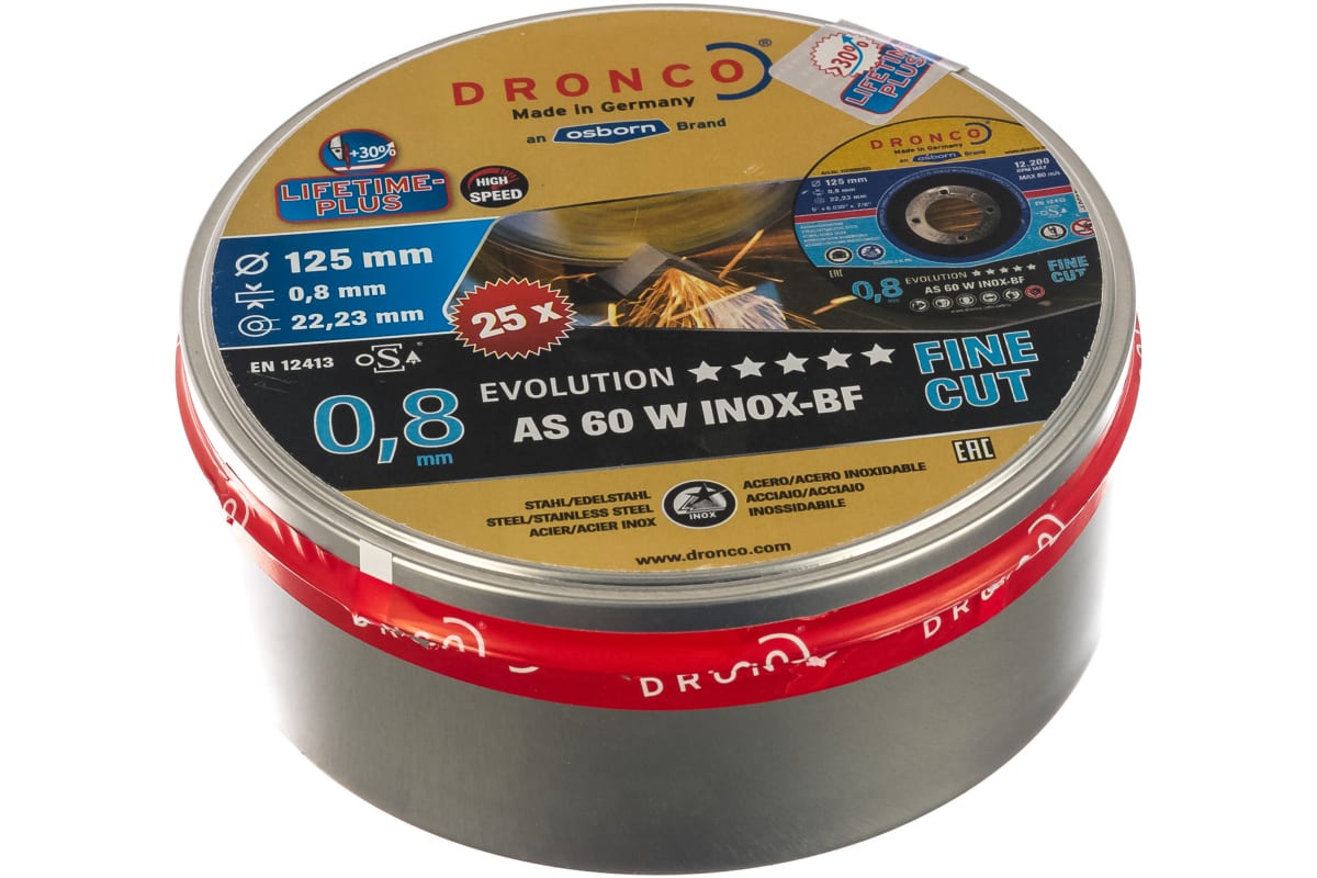 Диск отрезной Evolution AS 60 W BOX-25 DRONCO 6900843100 предназначен для угловых шлифовальных машин и ручных резчиков. Применяется для точной и быстрой резки тонких листовых металлов, стальных тросов, тонкостенных профилей и труб из высокосортной стали, цветных металлов, композитных материалов. Диск обеспечивает рез за минимальное время с минимальным усилием без заусенцев и термического воронения. Поставляется в жестяной коробке.
