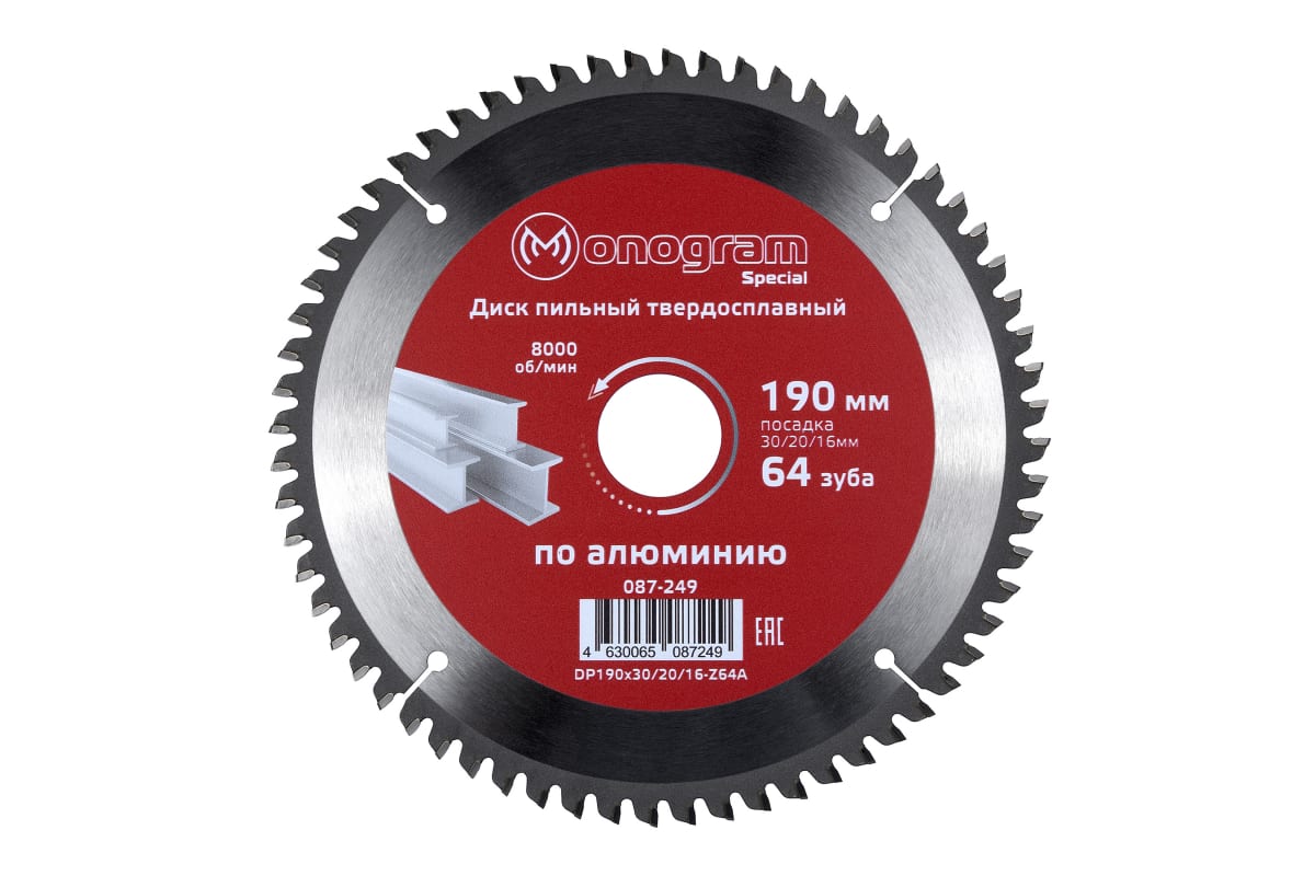 Диск пильный твердосплавный Special (190х30/20/16 мм; 64 зуба) MONOGRAM 087-249