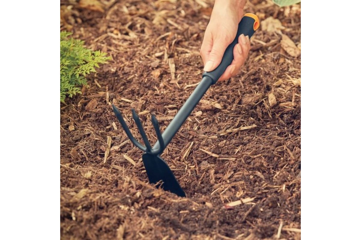 Тяпка Fiskars ErgoTM 1027030 – незаменимый помощник на садово-огородном участке. Рабочая часть с зубцами используется для рыхления и аэрации грунта, а с помощью мотыги легко ударять сорняки. Благодаря прочной конструкции тяпка подойдет для обработки твердой почвой. Рабочая часть инструмента выполнена из стали и имеет антикоррозийное покрытие, что обеспечивает долгий срок службы.