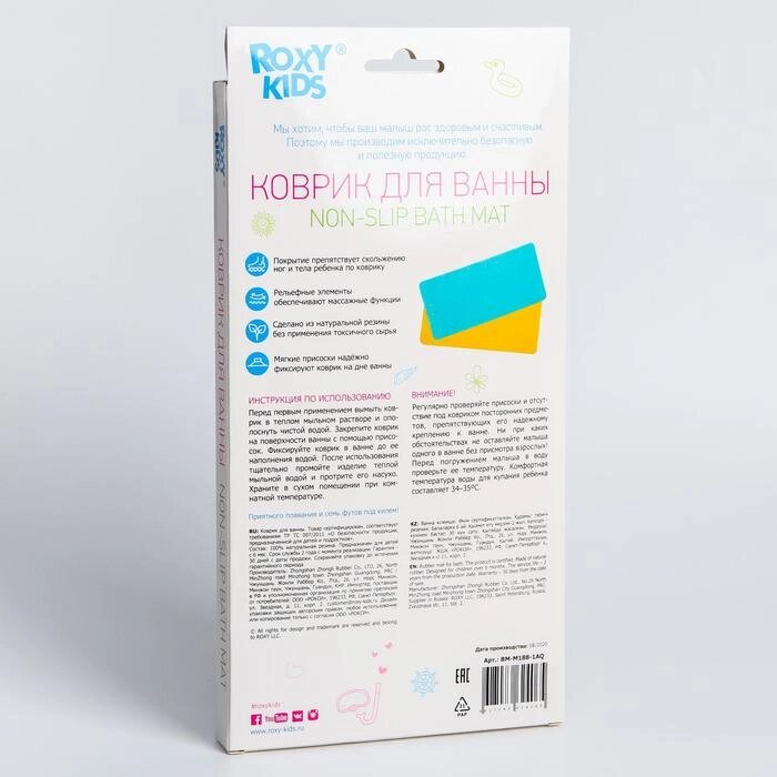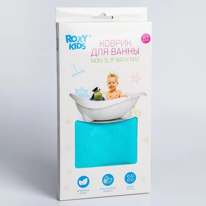 Антискользящий резиновый коврик для ванны ROXY-KIDS. 35 x 76 см. Цвет аквамарин.