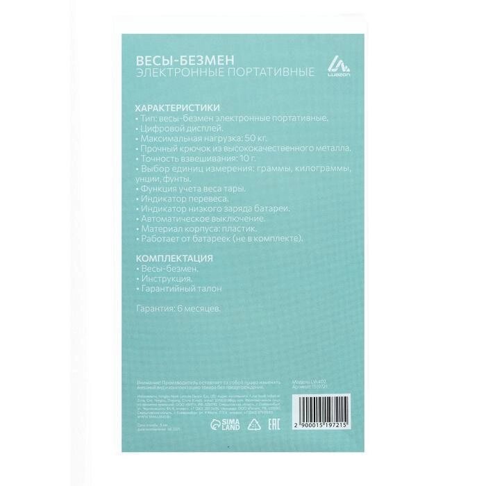 Безмен LuazON LV-402, электронный, до 50 кг, точность до 10 г, подсветка, чёрный