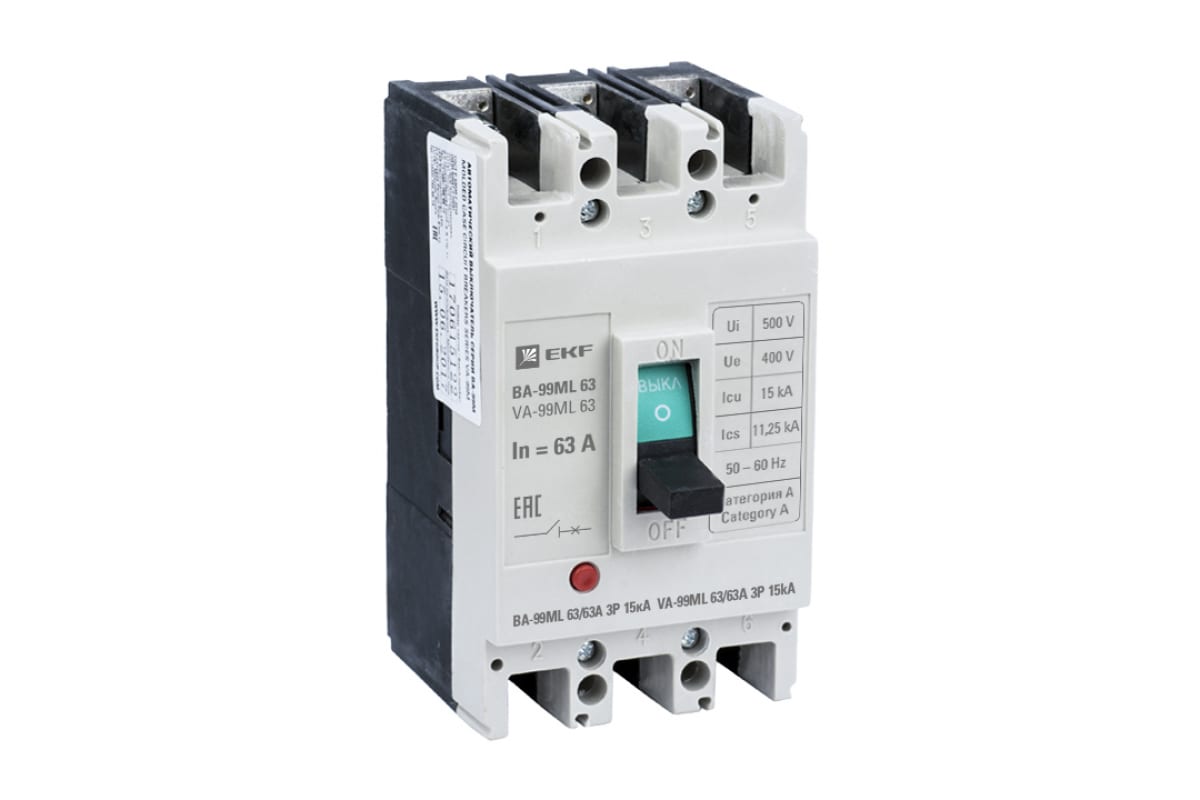 Автоматический выключатель EKF Basic ВА-99МL 63/63А, 3P, 15кА mccb99-63-63mi