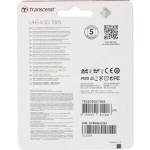 Карта памяти transcend 32GB sdhc class 10 UHS-II U3 V90 R285, W180MB/s (TS32gsdc700S)