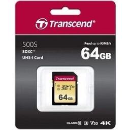Карта памяти transcend 64GB sdxc class 10 UHS-I U3 V30 R95, W60MB/s (TS64gsdc500S)