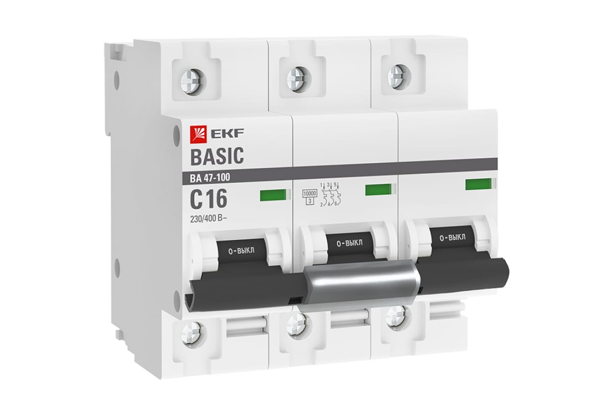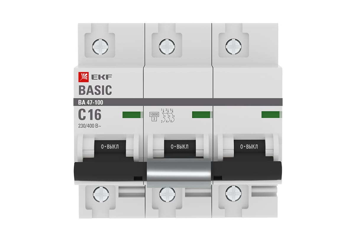 Автоматический выключатель EKF Basic ВА 47-100 3P, 16А, 10kA mcb47100-3-16C-bas