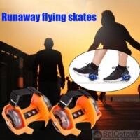 Ролики на обувь светящиеся (ролики на пятку) с подсветкой колес Small Whirlwind Pulley (безразмерные) Оранжевые