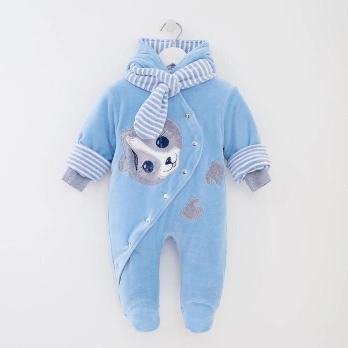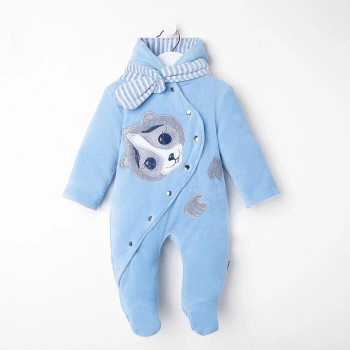Комбинезон на синтепоне, цвет голубой/енот, рост 68 см