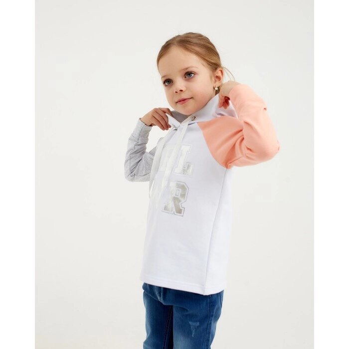 Джемпер (толстовка) для девочки А. 118035, цвет серый / персиковый, рост 98