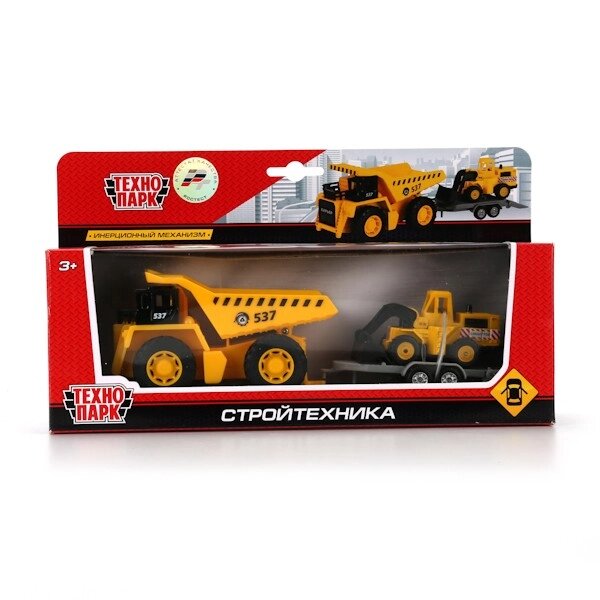 Модель ин. мет. Н-р строительной техники. Карьерный самосвал + бульдозер на тележке, кор. SB-16-43
