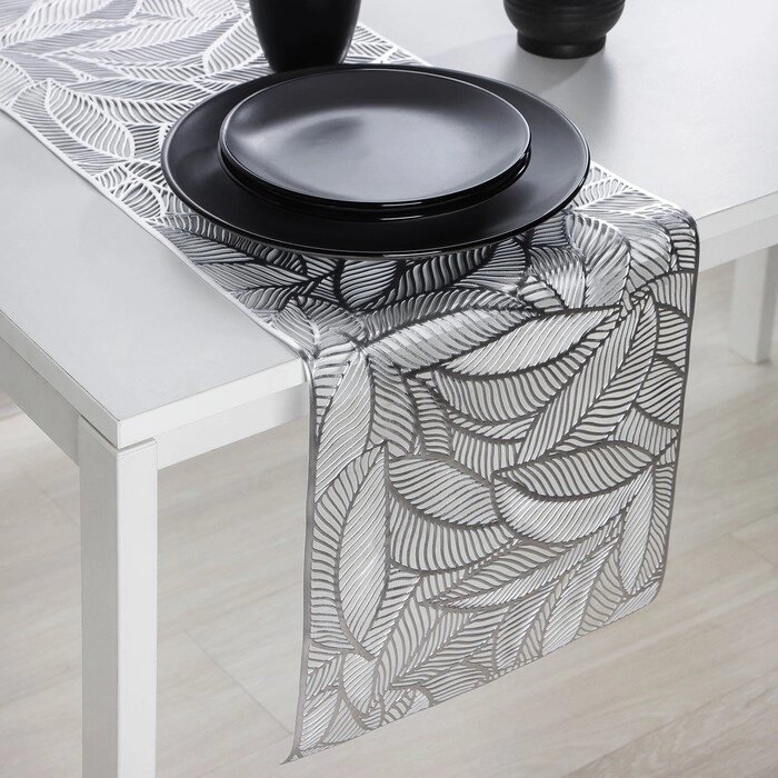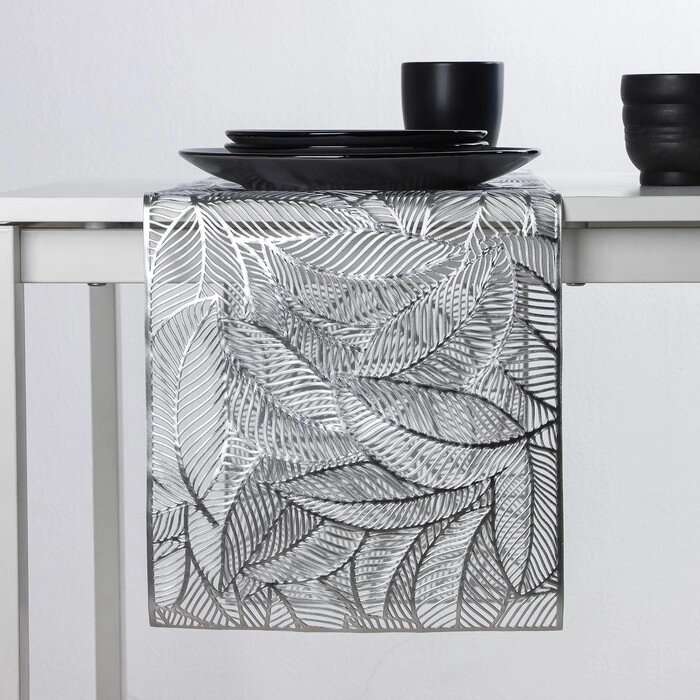 Дорожка на стол Доляна «Листопад», 30150 см, цвет серебро