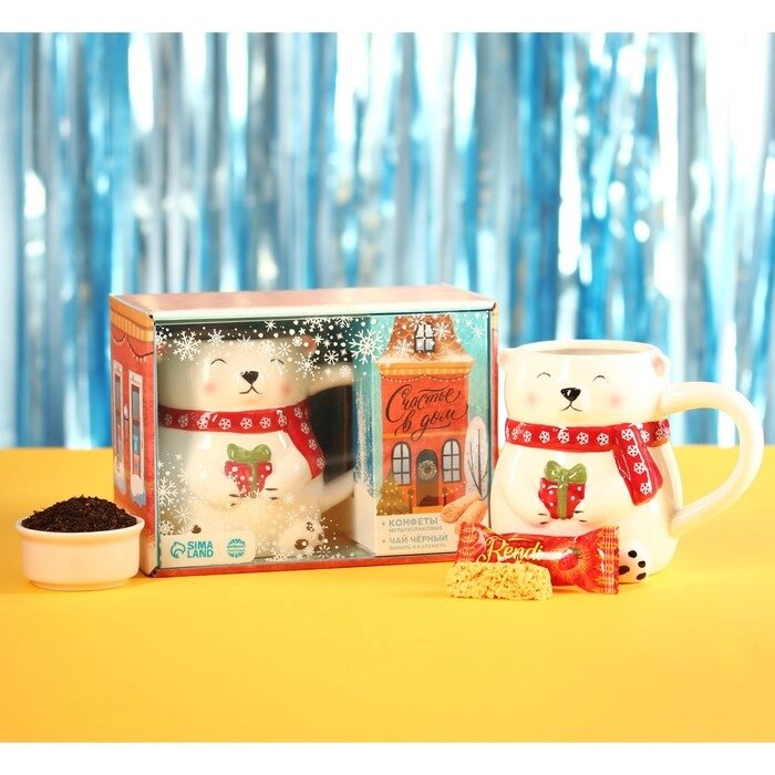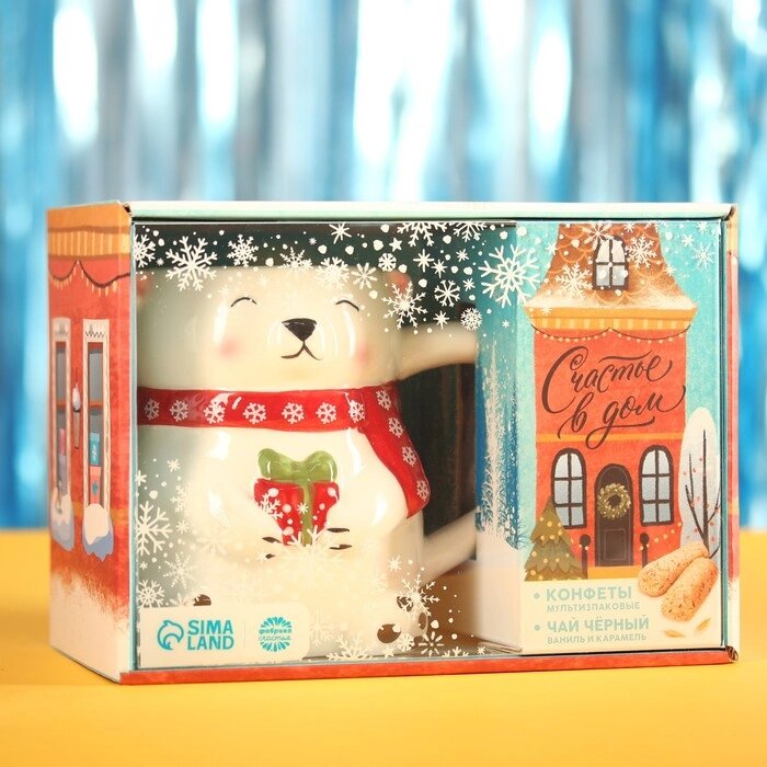 Подарочный набор «Счастье в дом»чай чёрный "Ваниль и кармель", 20 г; конфеты мультизлаковые, 50 г; кружка, 650 мл.