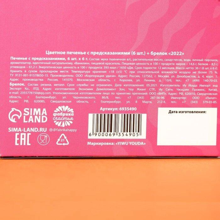 Цветное печенье с предсказаниями «2022», 6 шт. х 6 г. с брелком