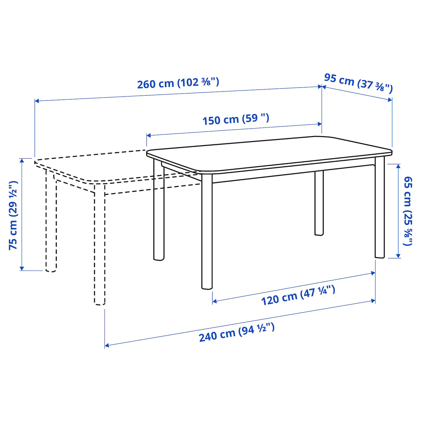 Две вкладные доски легко установить, чтобы увеличить размер стола, а когда гости разойдутся, вы сможете просто убрать их обратно под столешницу.