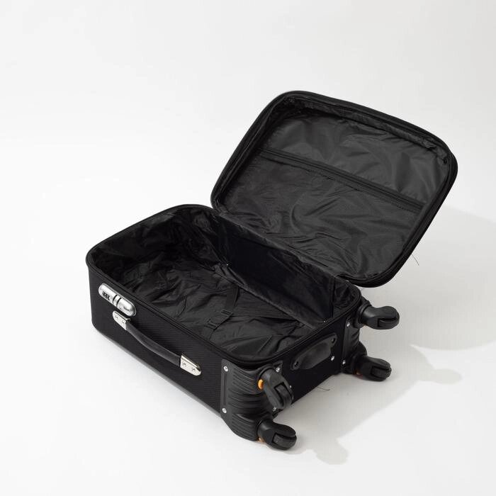 Чемодан мал 20", отд на молнии, н/карман, 4 колеса, черный