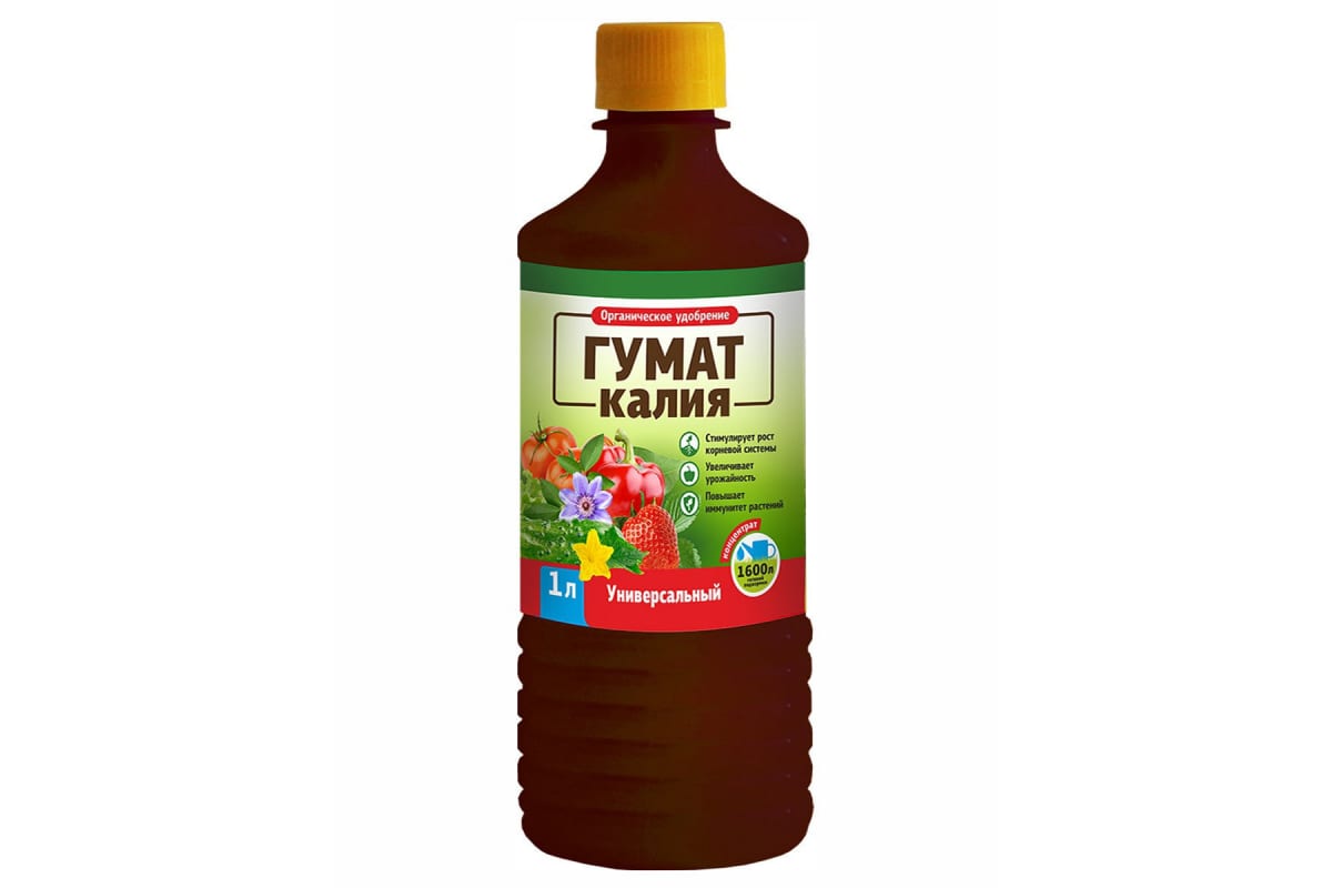 Концентрированное органическое удобрение БиоМастер Гумат Калия Универсальный 1 л 00001234958 используется для всех видов садовых растений, цветов и рассады.
