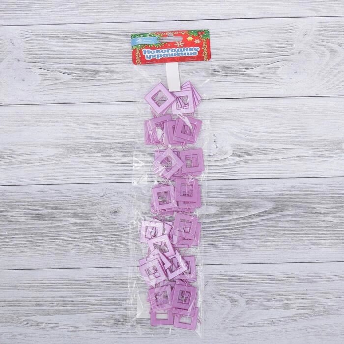 Бусы на ёлку 2,7 м "Квадраты" фиолетовые