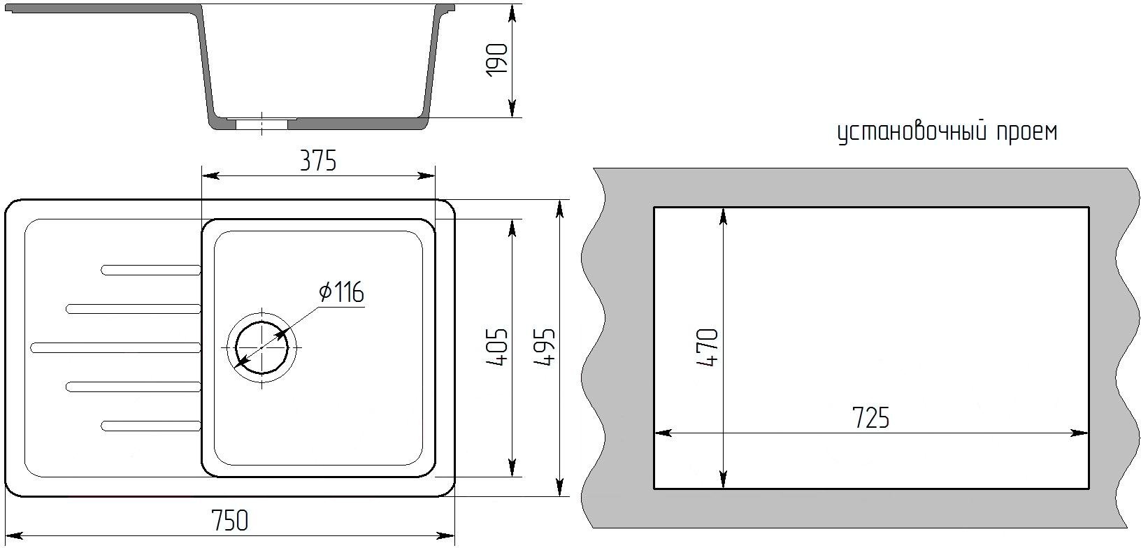 - Ширина мойки (от передней до задней стенки), см 50.5