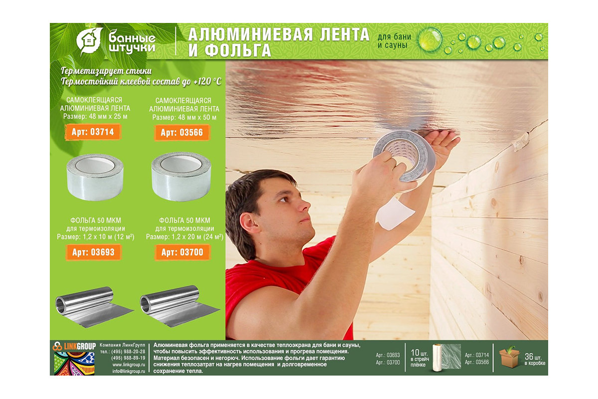 Алюминевая клейкая лента для термоизоляции Банные штучки 48 мм х 50 м /36 3566 применяется в качестве теплоэкрана для бани и сауны. Материал безопасен и негорюч. Лента герметизирует стыки, снижает теплозатрату на нагрев помещения и обеспечивает долговременное сохранение тепла. Клеевой слой на основе акрила выдерживает повышенную температуру до +120ºС.
