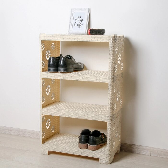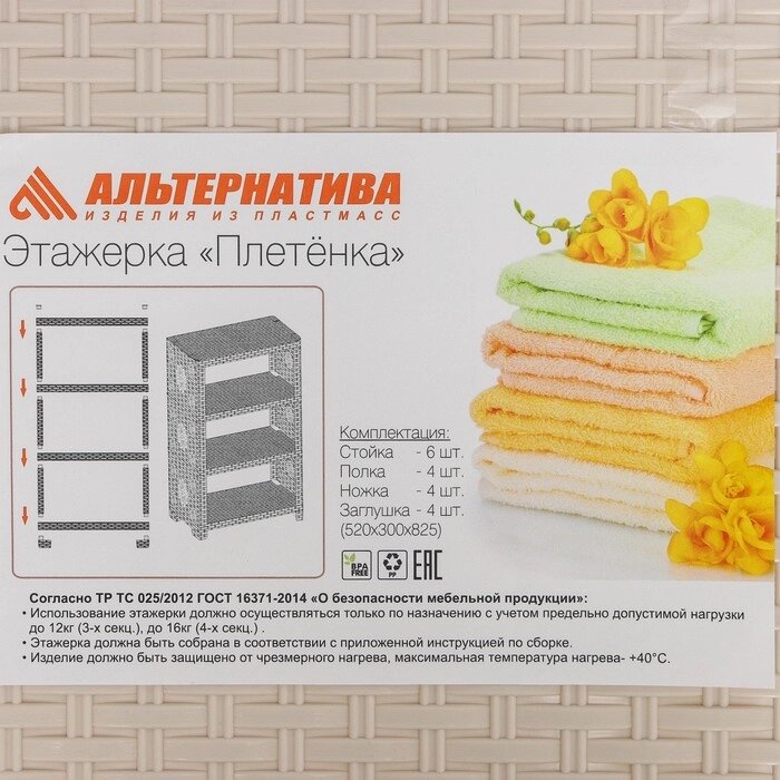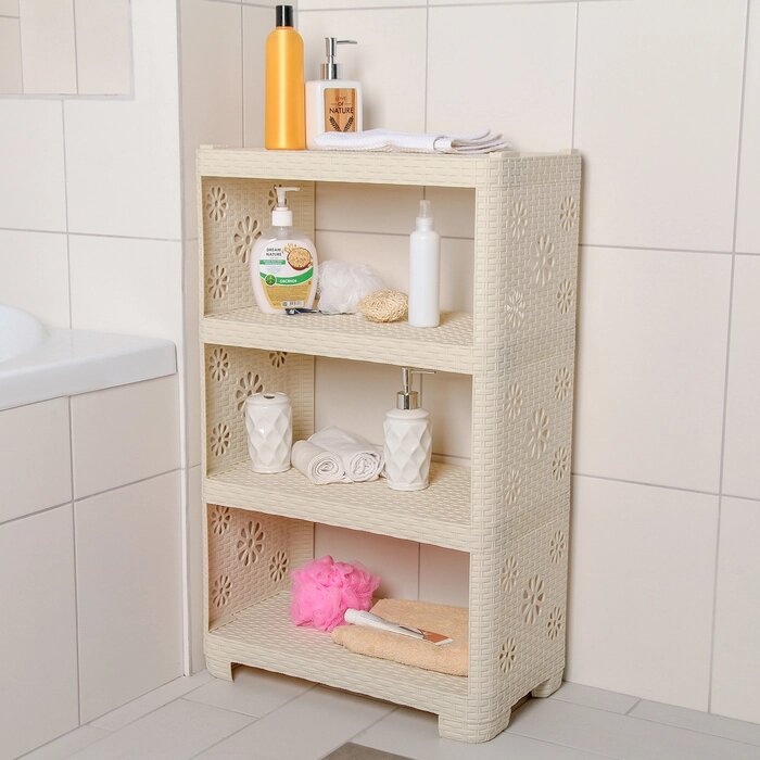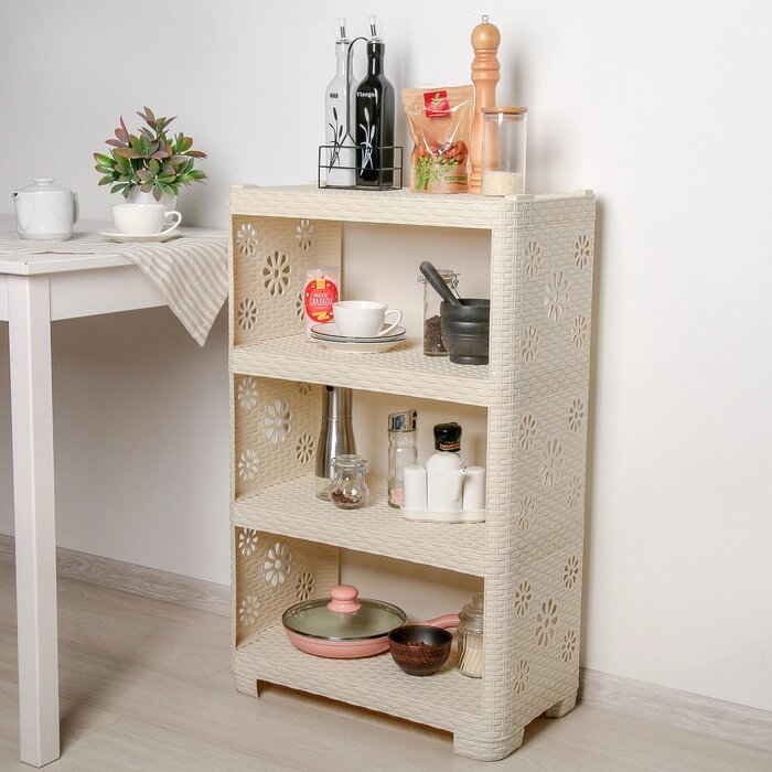 Этажерка напольная 4-х секционная 'Плетёнка'цвет слоновая кость